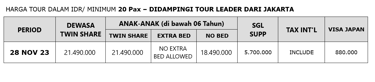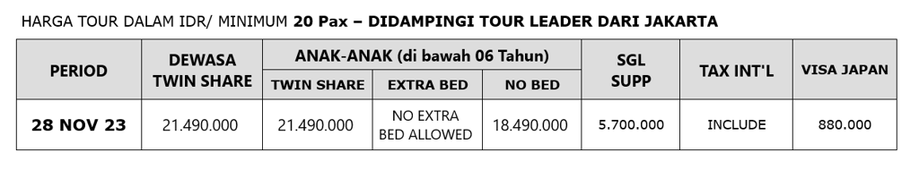 Setelah itu akan diantar ke Airport untuk keberangkatan ke Narita (Japan)